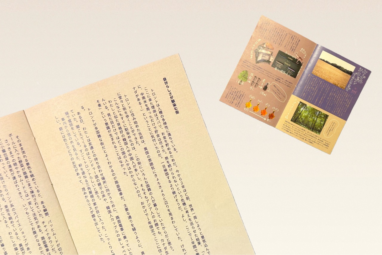 同封の冊子には、カナダでの暮らしを綴ったエッセイを収録。
